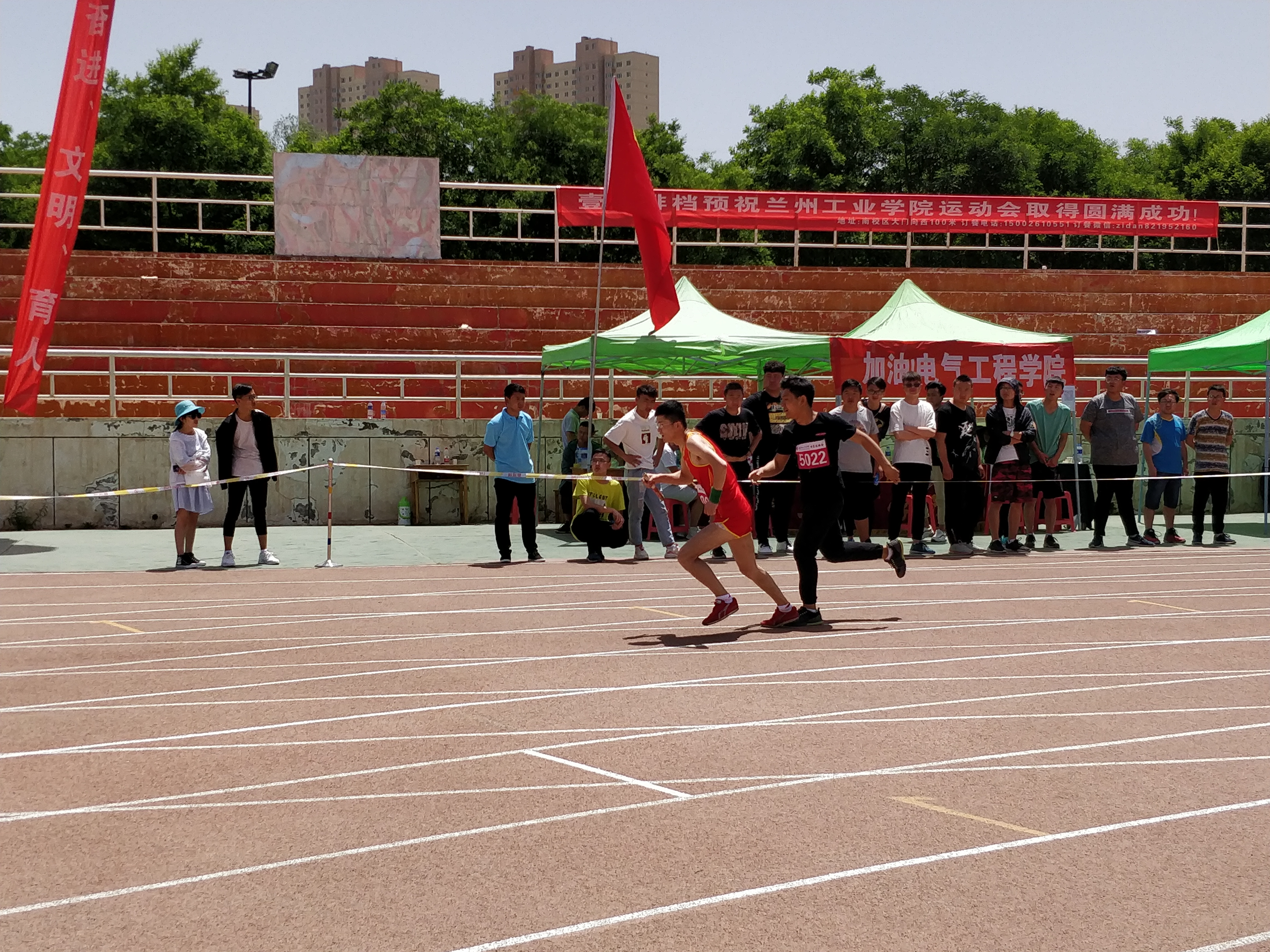 炎炎夏日,普洒着赛场的朝气。声声呐喊,象征着工院学子的蓬勃生机。2018年5月17日早上九点校党委书记俞子泓宣布兰州工业学院2018年运动会开幕。整个赛场顿时沸腾了起来,加油助威声此起彼伏。 运动员们个个英姿飒爽,我院运动健儿不负众望,在女子800米比赛中我院运动员成功进入决赛并取得优异成绩,男子4×400米比赛也进入决赛,其他参与赛事的运动员们不断超越自我、拼尽全力,即使落后也不放弃。他们的飒爽英姿,是对工院风采的最佳诠释。他们永不服输的运动精神给我们的感受远比成绩要重要的多。