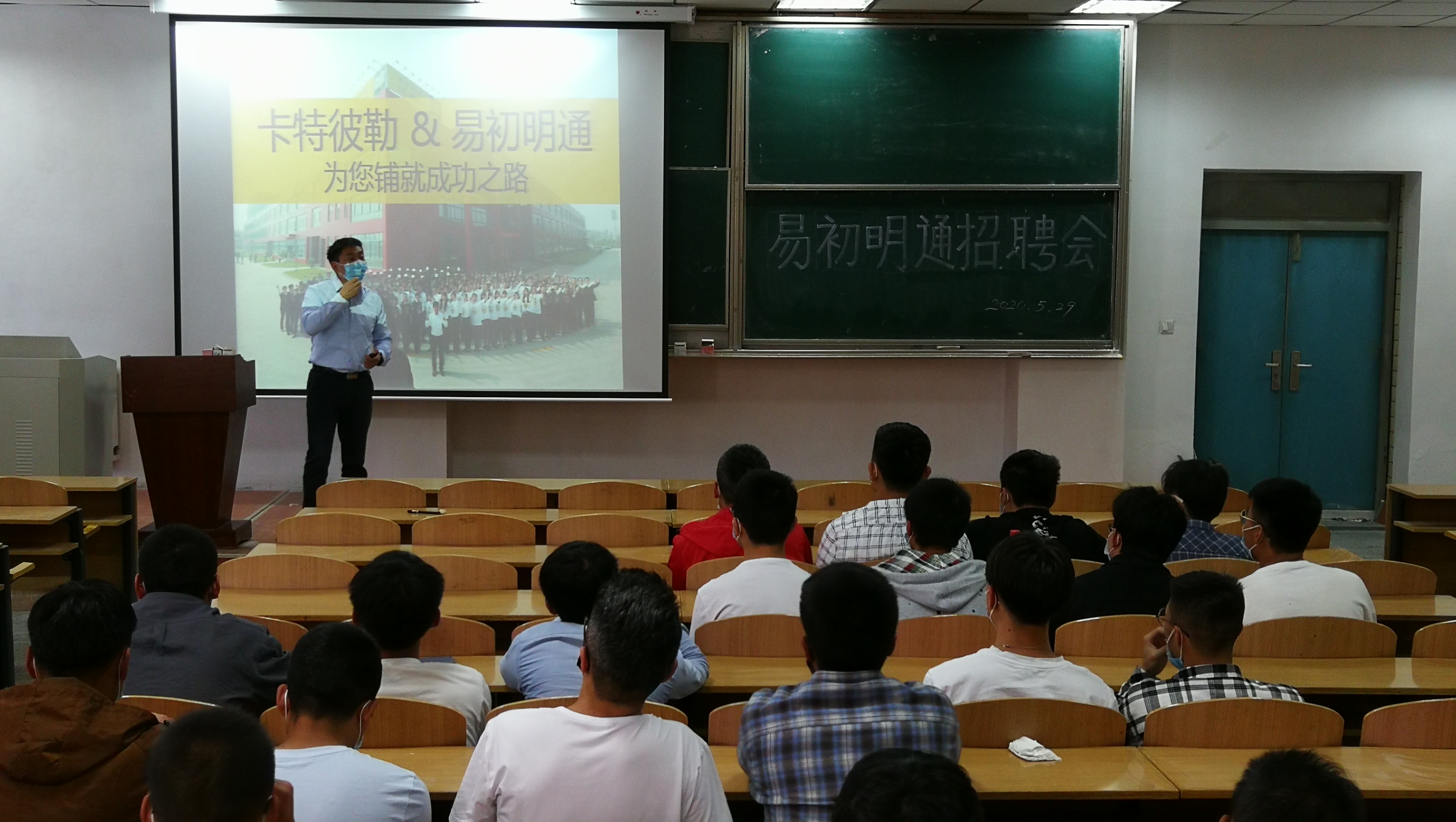2020年5月29日下午3:00,汽车工程学院在第四教学楼C201举行了四川易初明通工程机械维修服务有限公司现场招聘会,60多名学生参加了招聘会。会前党委书记张海鹏、党委副书记、副院长张辉与四川易初明通工程机械维修服务有限公司西北区总经理徐煜、甘肃区总经理毛洪就毕业生招聘进行了会谈。