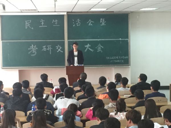 活动中,13级8位通过2017年研究生考试的同学以演讲和互动的形式分享了他们的考研经验,系统全面的分析了考研过程中遇到的一系列问题。最后,副院长张辉做了总结发言,首先,他对通过2017年研究生考试的同学表示热烈祝贺。第二,希望他们在以后的学习道路中更加努力刻苦,不忘初心,为母校争光。第三,希望全体党员、入党积极分子以他们为榜样,做好模范带头作用。