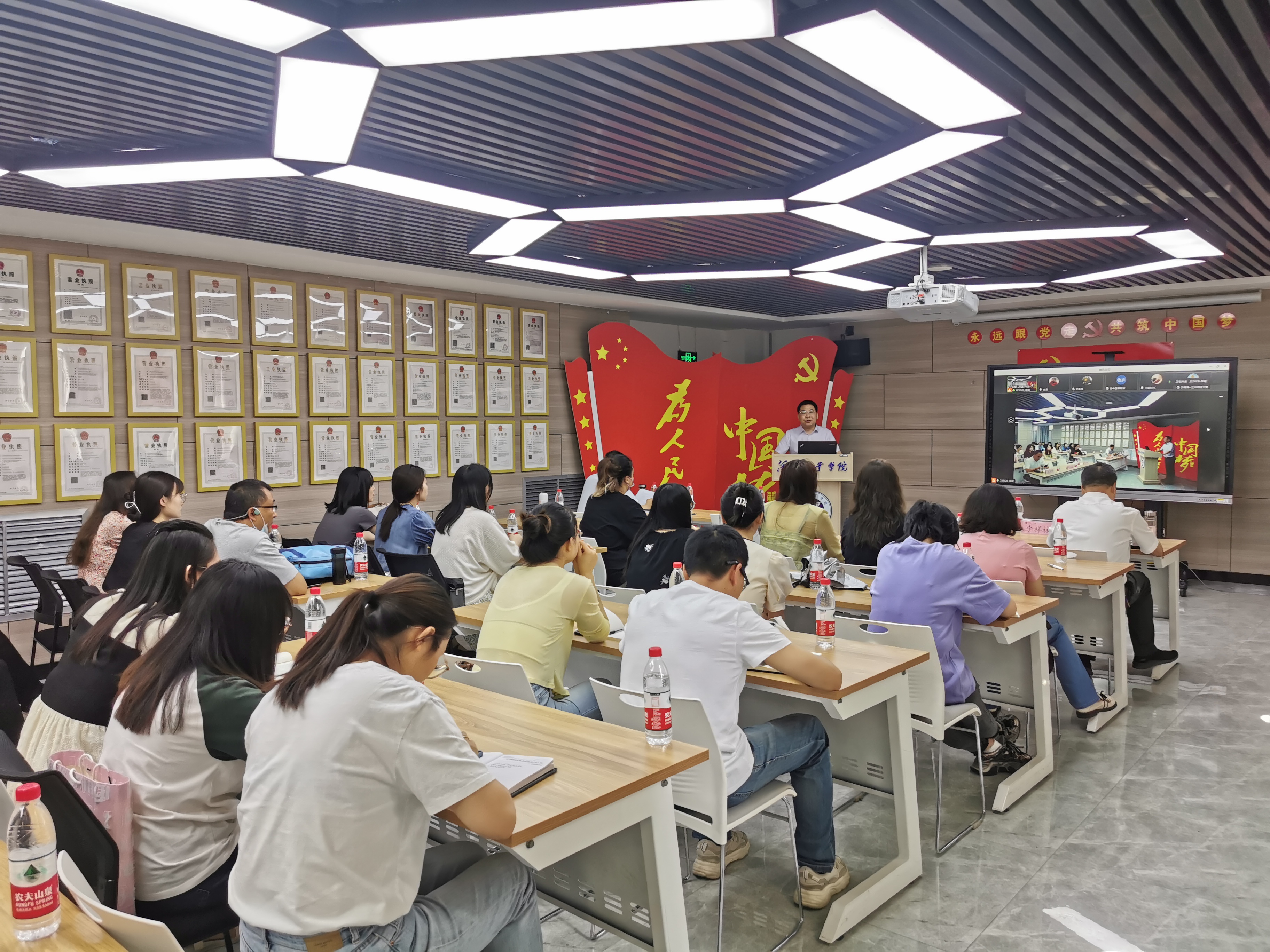 会上,林丰民围绕“人工智能助推教师队伍建设”作了专题报告。李祥林、罗文翠分别围绕“三段混合式智慧教学”“三位一体、四阶递进、五重融合,培养高质量机械类应用型人才”专题作了交流发言。来自甘肃区15所高校新入职教师聚焦学校教学实践过程中遇到的疑难问题,畅所欲言,跟专家们进行互动交流,四位专家针对各位青年教师提出的问题作出了回应。