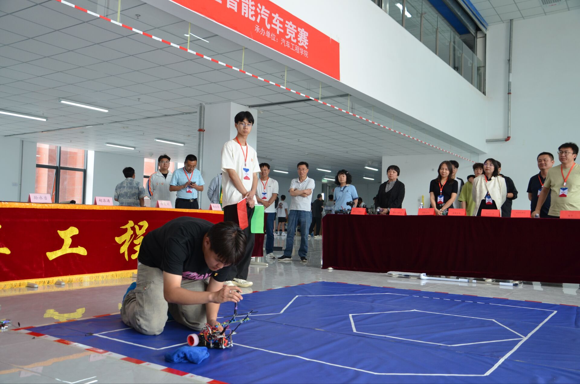 6月5日下午,由教务处、创新创业学院、团委主办,汽车工程学院承办的兰州工业学院第六届大学生智能汽车竞赛暨第二十届全国大学生智能汽车竞赛选拔赛在新校区圆满落幕。教务处处长赵浪涛、创新创业学院院长孙永吉、校团委书记李雯娟、汽车工程学院及协办院系师生代表出席。此次校园赛不仅标志着2025年度智能车大赛的正式启动,更是一场展示学生创新思维与实践能力的盛会。