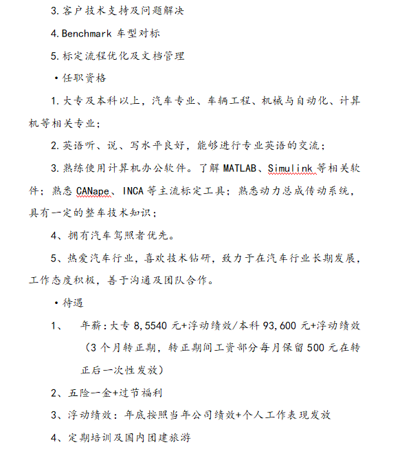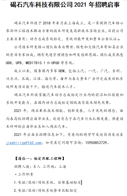 碣石汽车科技有限公司2021年招聘启事