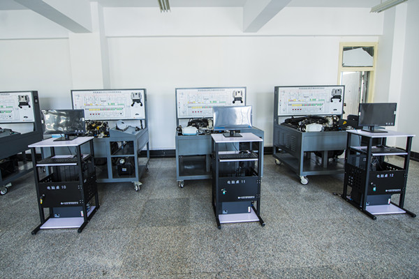 汽车性能分析实验室汽车工程学院面向车辆工程、汽车服务工程设置的综合性专业实验室,包括底盘性能分析、汽油机性能分析、柴油机性能分析、汽车零部件检测与分析四个分实验室,分别位于三教210、306、310、606,总占地面积460m2,该实验室拥有汽油机综合性能分析实训台架11台,泵-喷嘴柴油电控实训台,柴油共轨解部动行台,柴油燃料系统实训台,五十铃柴油发动机实训台,共轨柴油发动机实训台6台,发动机关键零部件检测实验台、拆装及测量工具8台套,主要承担《车辆维修工程》、《车辆构造》、《车辆理论》等课程实验以及课程设计、实习和毕业设计教学任务,通过汽车性能分析实验室实践教学,学生可掌握汽车发动机和底盘的结构、工作原理,通过对汽车底盘和发动机各主要系统和部件在适当的位置最大程度地进行了解剖,使学生清楚的观察总成部件内部零件的结构和运动关系;掌握汽车发动机电控系统的结构组成、工作原理、关键零部件检测方法及常见故障诊断方法;掌握汽车发动机拆装及关键零部件检测方法。