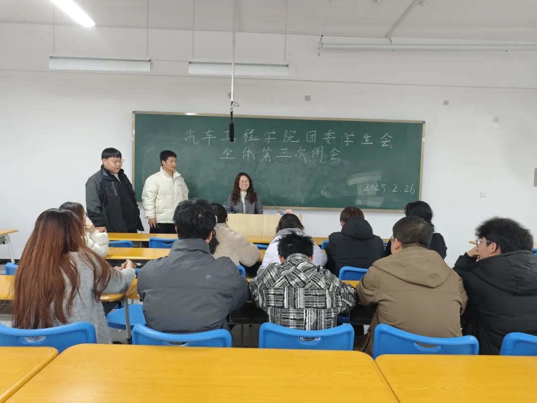 2025年2月26日晚,汽车工程学院学生会第三次全体例会在C303隆重举行。本次例会特别邀请了汽车工程学院团委书记张玉清出席,学生会全体成员齐聚一堂,共同总结近期工作成果,规划未来发展蓝图。