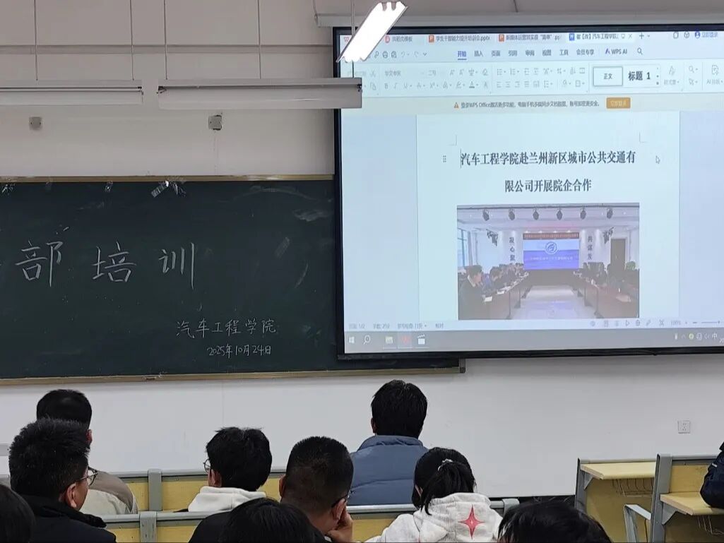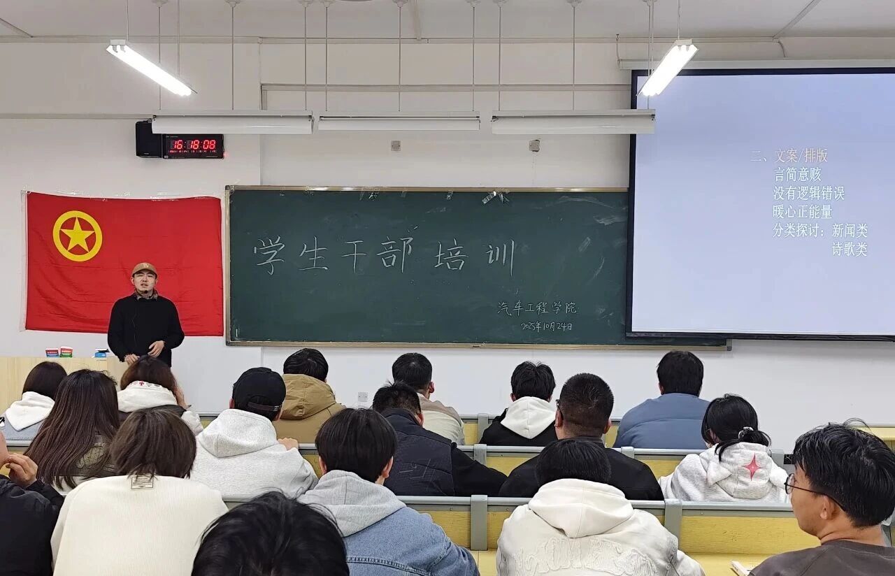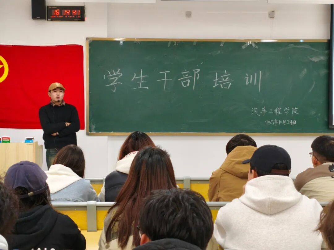 2025年10月24日,汽车工程学院于公共教学楼D104开展学生干部培训。此次培训,首先由党委宣传部老师刘紫豪分享新媒体技巧,再由汽车工程学院团委书记张玉清分享管理经验,助力大家更好地投身学院学生工作。