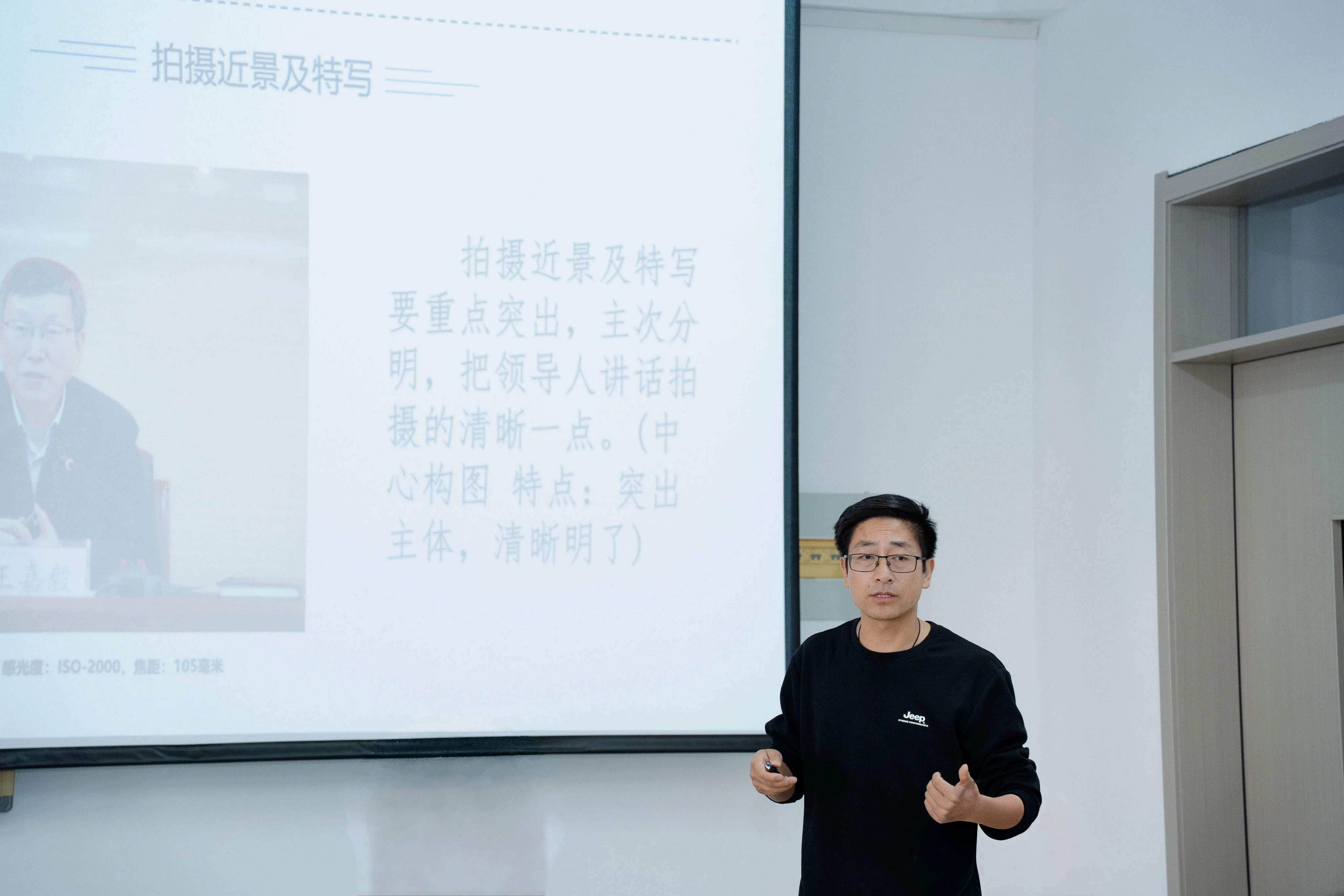培训中,许老师结合丰富的实践经验与工作案例,围绕公务摄影的核心要求、构图技巧、场景拍摄注意事项等关键内容展开讲解。从会议记录、活动纪实等常见场景的拍摄要点,到照片后期处理的基础规范,许老师深入浅出地分享了实用知识,帮助学生干部们掌握捕捉活动亮点、呈现工作风貌的拍摄方法。
